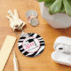 A keychain featuring a background design of zebra printand pink. Text "Class of 2011" with black graduation cap illustration inside pink frame. Personalise with your name.