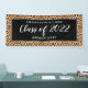Decorate for your graduate party with this Graduation Class of 2022 Leopard Personalised Banner. It has a modern design with an animal print background. The bold white text is "class of 2022" in trendy calligraphy script lettering and you can customise the graduation year if needed by following the template made available. the text is "congratulations" across the upper front of banner. Personalised with name on the lower centre.