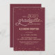 This elegant and festive 4.5" x 6.25" Graduation Party petite invitation features gold (simulated foil) confetti with the words "Class of 2025 Graduate" showing in a gold script font. The background is maroon, but can be changed to any colour of your choice. The celebration details can be easily customised for your special event (such as name of high school). The back of the sheet features a gold dotted pattern, also with a maroon background that you can customise to your liking. A beautiful and simple way to invite guests to celebrate a graduation.