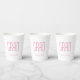 Graduation Class of 2025 paper cup with a minimalist design. With pink customisable typography lettering, you can add your own text. A simple party addition for that special party for your grad.