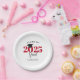 This personalised party paper plate is perfect for any graduation celebration. The red and black text reads: Class of 2025 Grad. A black mortarboard sits on top of the zero in the year.