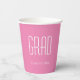 Graduation Class of 2026 pink and white paper cup with a minimalist design. With white customisable lettering, you can add your own text. A simple party addition for that special party for your grad.