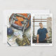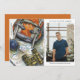 Graduation Class of Geography Science Education Grad Photo Announcement features a watercolor illustration of travel accessories with a backpack, map and compass. The text "Grad", your qualification, name, year of qualification and location of study. Personalise by editing the text in the text boxes provided and adding your favourite photo. Designed by ©Evco Studio www.zazzle.com/store/evcostudio