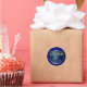 Blue graduation envelope sticker seals, with graphics of a blue and gold shield. Gold tone graphic text reads Class of and golden yellow custom text shows the year, and can be personalise for any year you need. Matching graduation products are available.