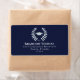 This design features a graduation graduate grad return address, a classic traditional laureate mortarboard, simple minimalist minimal laurel leaves, for high school or college senior, with school colours navy blue template, for a graduation grad party envelope seal, a graduation invitations announcement seal, a classy elegant graduate laurel leaves, a simplistic simple clean modern style, a simple basic typography style