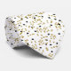 Graduation Confetti Tie, Gold and Black-An allover print of graduation confetti. Tiny gold star confetti pieces mixed with black graduation hat confetti sprinkled throughout on a plain white background. A perfect gift tie for the graduation party celebration.