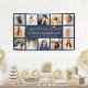 Add an elegant personalised touch to college or high school graduation party decorations with a custom 12 photo collage banner. The pictures and all wording on this template are simple to personalise, and colours are easy to change with the Zazzle design tool. The navy blue and gold design features a faux foil mortar board cap, trendy handwritten script calligraphy, chic modern minimalist typography, and twelve favourite photos of your choice, such as senior pictures or images from the commencement ceremony. Please note that gold is printed colour, not metallic foil. This large graduation party sign can be hung on a wall to welcome guests to the celebration or used as a fun and stylish photo booth backdrop. Congratulations to the graduate!