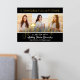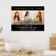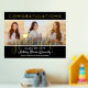Add an elegant personalised touch to college or high school graduation party decorations with a 3 photo collage 18"x24" black and gold foil print. Pictures and all wording on this template are simple to personalise. (IMAGE PLACEMENT TIP: An easy way to centre a photo exactly how you want is to crop it before uploading to the Zazzle website.) The black, white and gold design features real metallic foil, chic black handwritten style script calligraphy, stylish modern minimalist typography, and three photos of your choice, such as senior pictures or images from the commencement ceremony. This party sign is an elegant way to celebrate the special day. Congratulations to the graduate!