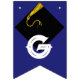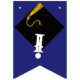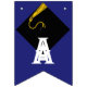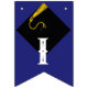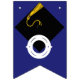 Graduation congrats party decoration featuring classic black and gold graduation cap on a blue background.