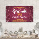 Add a personalised touch to college or high school graduation party decorations with this custom maroon red and gold yellow banner. All text is simple to customise to include name, class year, school, degree, honours, inspirational quote, or other text of your choice. Design features a burgundy red background, mortar board cap, festive confetti dots, stylish modern typography, and handwritten style script calligraphy. Please note that gold is printed colour, not metallic foil. This party sign is an elegant way to celebrate the special day. Congratulations to the graduate!