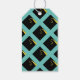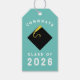 Graduation gift tags featuring congrats and classic black cap with gold tassel pattern on teal blue background. To customise edit text to add senior class year or the name of graduate.