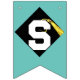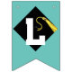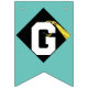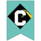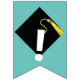 Unique graduation party bunting flags decoration featuring congratulations featuring black and gold cap on blue teal background for the grad.