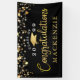 Create a modern custom, personalised graduation banner sign featuring the title CONGRATULATIONS NAME in a stylish handwritten calligraphy script metallic gold typography with gold stars, confetti and string lights in your choice of background colour (shown in black) you can change to a school colour, coordinated party theme colour or choose from styled graphics backgrounds for a custom look. CHANGES: Change the background colour or the text font style, size, colour, spacing and placement in EDIT. OPTIONS: The sample is shown in a 3x5' size--other sizes are available on the ordering page or the design can be transferred to a poster, foam board, tapestry or other product or converted by the designer to a Digital Download file for local printing. ASSISTANCE: For help with design modification/personalisation, colour change, transferring the design to another product or if you would like coordinating items, contact the designer BEFORE ORDERING via Zazzle Chat or makeitaboutyoustore@gmail.com.