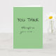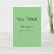 Celebrate the achievement of your loved one or friend with this graduation card! The front of the card reads: "YOU THINK," followed by "therefore you are..." Opening the card, the wording continues: "A GRADUATE! Congrats!" The message is a play on the philosopher René Descartes' famous phrase "Je pense, donc je suis [I think, therefore I am]" ("cogito ergo sum"). The card is sage green, and the message is in black handwritten-style lettering; customize with other colors if you wish. Perfect for grads from high school, college, or graduate school!