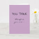 Celebrate the achievement of your loved one or friend with this graduation card! The front of the card reads: "YOU THINK," followed by "therefore you are..." Opening the card, the wording continues: "A GRADUATE! Congrats!" The message is a play on the philosopher René Descartes' famous phrase "Je pense, donc je suis [I think, therefore I am]" ("cogito ergo sum"). The card is pastel lilac purple, and the message is in black handwritten-style lettering; customize with other colors if you wish. Perfect for grads from high school, college, or graduate school!
