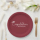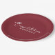 Modern and stylish, yet simple red and white graduation cap/ graduation party paper plates customised with the name of the guest of honour. The background colour of these paper plates is customisable so design them to be your school colours if you would like. Check our shop for other colours and font styles.