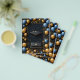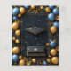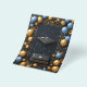 A luxurious display featuring black items surrounded by festive golden and blue balloons with confetti. Perfect for celebrations, events, or showcasing sophistication.