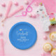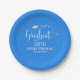 This design features a graduation paper plate, with a modern graduate grad party design, with fancy calligraphy font script, simple trendy mortarboard typography, stylish and chic, minimal minimalist senior celebration design, great for high school or college parties classic graduating class of your year, a great way to celebrate with custom party supply supplies, this blue classic classy text paper plate is a great addition.