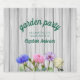 Garden party graduation with pink and white roses as well as blue and purple wildflowers.