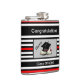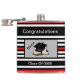The flask itself is fine. It’s a cheap flask, obviously bought in bulk, however am prepared to overlook that. Given that it is a personalized item, I would have liked to have seen gift boxing instead of the generic packaging. Terrible printing, and/or quality. It’s a cheap, tacky vinyl. It is not cut straight and is also applied in a way that it is overhanging the bottom, causing the glue to catch on items and it will eventually roll and tear, damaging the wrap.