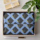 Creative graduation gift and grad party decoration tissue featuring black and gold graduation cap pattern on light-blue background.