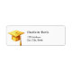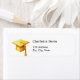 A faux gold graduation cap. Personalise and add your name and address. Black letters.