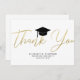 Send a modern thank you card to your family and friends for your graduation. This typography design features an illustration of a black graduation cap and diploma with a modern faux gold script that reads. "Thank You" in hand lettered script with your name, school, and class/year below to customise. The back of the card has a thank you message and signature you may personalise or delete. Designed by artist ©Susan Coffey.