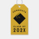 Graduation gift tags for the grad featuring creative black cap on gold background design. Edit text to add senior class year.