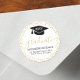 These stylish graduation round return address labels feature trendy calligraphy script, and gold glitter confetti around the edge, with the graduating year in the grad cap.