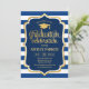 Graduation - Gold Navy Blue White Stripes Invitation