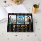 Let your favourite grad be proud, rejoice and always remember her milestone with this stunning keepsake graduation guest book. Stunning, modern, sparkly gold typography script overlays three custom photos on a black and dark grey striped background with gold dots. Personalise the custom text with your grad’s name, school, and class year. A customisable quote is on the back. Matching invites, thank you cards, cap toppers, napkins, plates and other graduation goodies are also available in this trendy and stylish collection. Guaranteed to preserve the cherished memories of this special occasion!