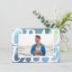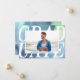 Graduation Photo Announcement. Cool white stacked text over gradient sky colours with framed centred photo. Completely versatile do-it-yourself style layout. Easily adjust the size and placement of the photo and frame, or change the font style and placement of custom text fields in advanced Customise mode.