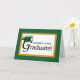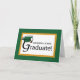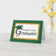 Dark green and gold trim around the card frames the congratulations graduate wording. A dark green graduation hat sits atop the capital G of graduation. Perfect card to congratulate and wish a bright and successful future to the new graduate!