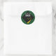 Cool graduation envelope seals, party favour labels and grad gift stickers featuring black cap with gold tassel on green background. Edit text to personalise.