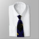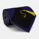 Navy blue graduation neck tie featuring classic black graduation cap and gold tassel pattern.