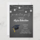 Invite your friends & family to your party with this cute rustic or country Graduation Hat, Grey Chalkboard, & Mason Jar string lights Graduation Party invitation.