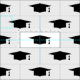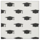 Graduation hat with tassel pattern textile fabric for DIY projects. Black and white print for class of 2020. Make your own gifts for graduates, high school students, college grads etc.
