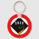 Unique little graduation memento keepsake keychain gift featuring black cap with gold tassel design on a red background. To customize edit text to change senior class year.