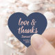 Add a stylish personalised touch to college or high school graduation party thank you notes, favours, and decorations with custom "love & thanks" heart shaped stickers. All wording on this template is simple to customise for envelope seals or gift tags. The navy blue and pink design features modern script calligraphy and classic typography class year. These elegant labels add a unique touch to a special day celebration. Congratulations to the graduate!