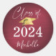 Graduation Maroon Gold Cap Year Faux Metallic Classic Round Sticker