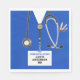 Creative doctor graduation party napkins featuring blue hospital scrubs, a stethoscope, and funny Swiss Army knife. To personalise edit text to add doctor's name.
