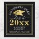 Modern, elegant graduation wine or beverage labels with CONGRATS GRAD, shimmering metallic gold foil graduation cap or mortarboard and class year and personalised with the graduate's name and your custom text against an editable black background you can change to a school colour, party theme colour or favourite colour. ASSISTANCE: For help with design modification/personalisation, colour change, transferring the design to another product or if you would like coordinating items, contact the designer BEFORE ORDERING via the Zazzle Chat MESSAGE tab or email at makeitaboutyoustore@gmail.com.