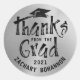 Graduation Metallic Silver Brushed Print THANKS Classic Round Sticker