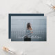 Graduation modern photo script typography elegant announcement card. Navy blue backer.