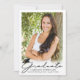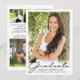 Announce your high school or college graduate's achievement with this modern, elegant, black and white announcement featuring handwritten script typography GRADUATE title accented with a black graduation cap with gold tassel and 5 photos (1 on the front and 4 on the back). The back is designed to include information about your graduate's achievements, activities and future plans as desired. PHOTO TIP: Pre-crop/size your photos into a similar shape as shown or have the subject in the middle BEFORE uploading. Use the CROP tool to adjust your images within the template area. ASSISTANCE: For help with design modification or personalisation, colour change, transferring the design to another product or you would like coordinating items, contact the designer BEFORE ORDERING via the Zazzle Chat MESSAGE tab or email makeitaboutyoustore@gmail.com.