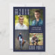Classic, modern sleek text design with four photos of your graduate against an editable background colour (shown in Navy Blue) to invite guests to the graduation party. The party date and time are on the front and party invitation details are on the back side. CHANGES: You can change the background colour by clicking EDIT. ASSISTANCE: For help with design modification or personalisation, colour change, resizing, transferring the design to another product or if you would like coordinating items, contact the designer BEFORE ORDERING via the Zazzle Chat MESSAGE tab below or email makeitaboutyoustore@gmail.com.