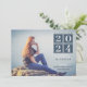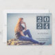 Classic and modern, this design features four deep blue coloured squares in the top right corner, with the words 'Class of' written above. Use the easy provided templates to change the numbers to create the year of your choice - the colour (pale blue is shown) can also be changed to match your personal photograph. Customise the rest of the invitation with your own name and text, then replace the photo with your own portrait. The reverse side has a cool grey-blue leafy pattern on a navy blue background for a clean, modern look. More text could be added if desired, simply customise to your liking using Zazzle's easy design tool! Feel free to contact the designer if you have questions.