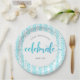 “Celebrate.” Be proud, rejoice and showcase this milestone of your favourite grad! Celebrate with this stunning, modern, sparkly turquoise glitter dots and typography script against a baby turquoise blue and white striped background, paper plate for an event to remember. Personalise the custom text with your grad’s name and class year. Your choice of 2 sizes: 7” or 9”. Guaranteed to add stylish fun to her special party! Matching invites, napkins and other graduation goodies are also available in this trendy and special collection.