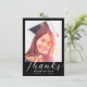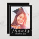 Graduation Modern White Script Photo Black Thank You Card
