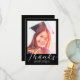 This custom photo graduation thank you card features a photo at the top with the word "Thanks" in white script with your name and year to personalise. Add a message of thanks on the back of the card and signature accented by a white graduation cap on black. Designed by artist ©Susan Coffey.